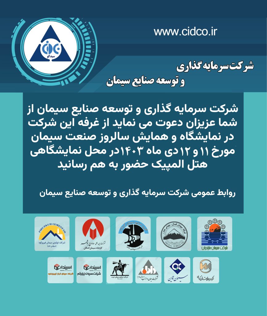 شرکت سرمایه گذاری و توسعه صنایع سیمان از شما عزیزان دعوت می نماید از غرفه این شرکت در نمایشگاه و همایش سالروز صنعت سیمان مورخ 11 و 12 دی ماه 1403 در محل نمایشگاهی هتل المپیک حضور به هم رسانیم.
