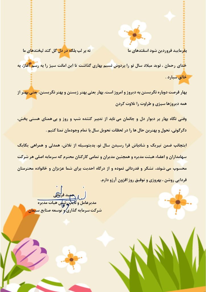 پیام نوروزی مدیرعامل محترم سرمایه گذاری و توسعه صنایع سیمان
